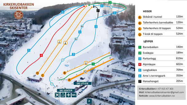 The ski center has six slopes divided into the main slope and a screened children's area. On the main slope there are two parallel lifts, a T-hook lift and a bowl lift that take skiers to the top.